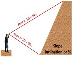 測量模式: 水平距離、垂直距離、斜距和傾斜角(或百分比斜率)